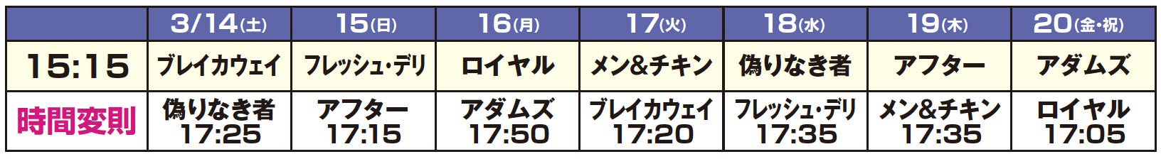 3/28(土) 19:55〜(終22:12)